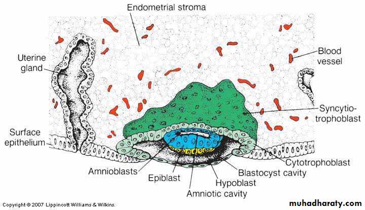 1-The blastocyst is completely embeddeddefect is almost covered by the mucosal cells.