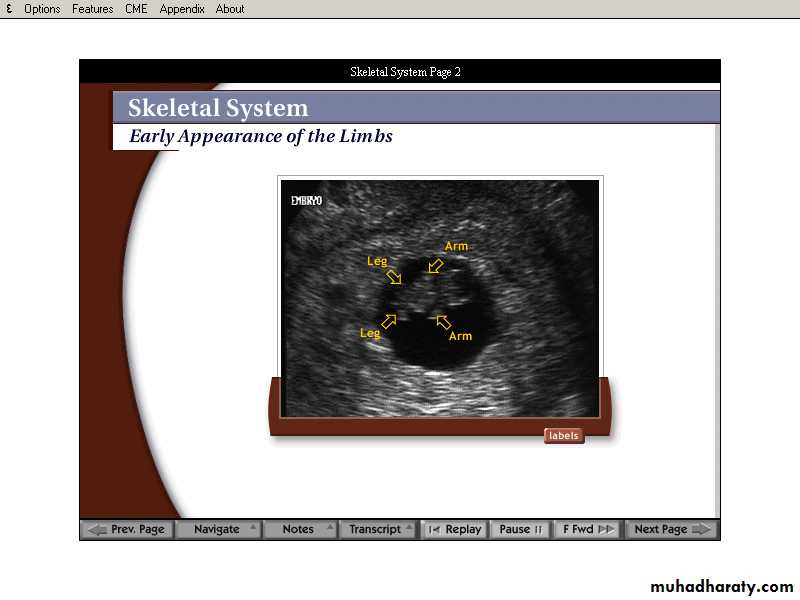 increase in head size and formation of the limbs, face, ears, nose, and eyesBy the beginning of the fifth week, forelimbs and hind limbs appear as paddle-shaped buds