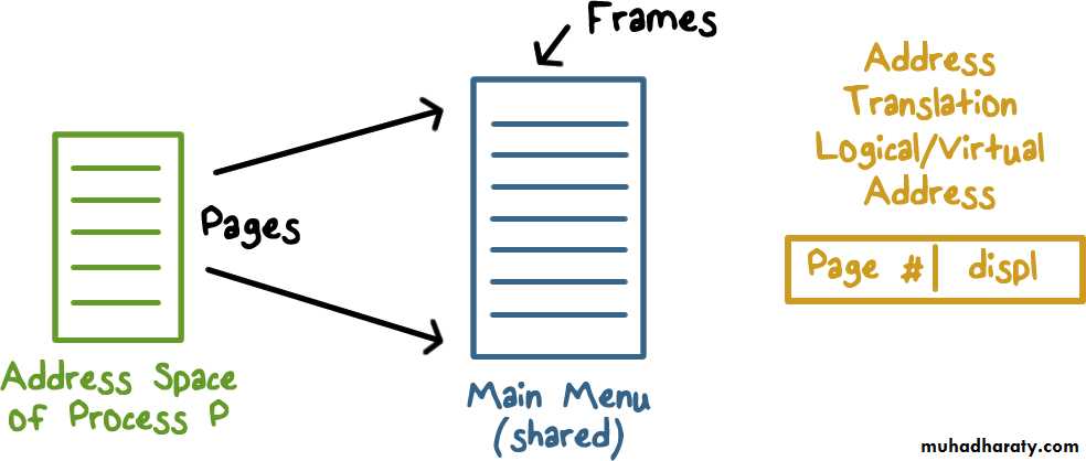 • Operating system maps logical virtual addresses or pages onto physical memory framesProcess Data/Code Protection