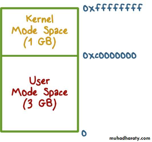 • Linux, DOS, OS X• 32-bit Linux: Lower 3GB for user code/data, top 1GB for kernel