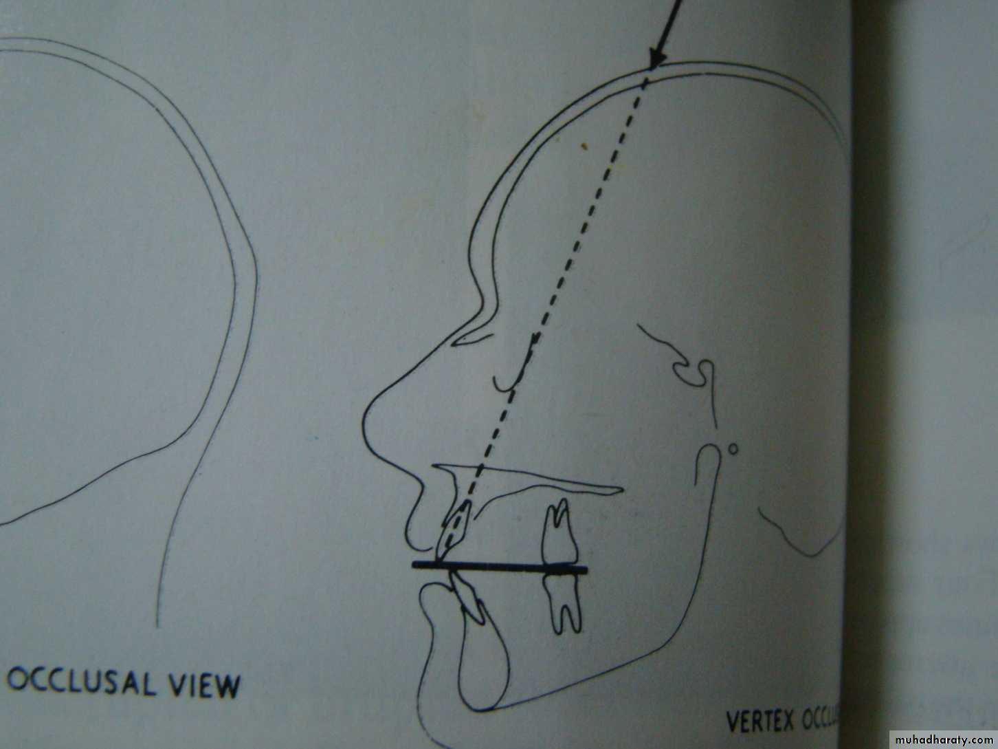 the vertex occlusal view the x ray tube is arranged so that the central ray passes along the long axis of the central incisors