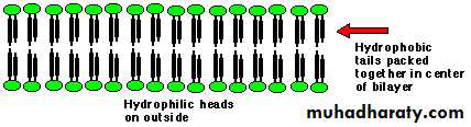 Hydrophilic heads line up on both sides in contact with water (outer surface is exposed to ECF and inner surface is in contact with ICF)
