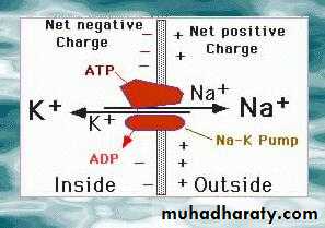 An unequal distribution of (Na+) and (K+) ions, occurs on the two sides of a nerve cell membrane because carriers actively transport these two ions: sodium from the inside to the outside and potassium from the outside to the inside by SODIUM - POTASSIUM PUMP.