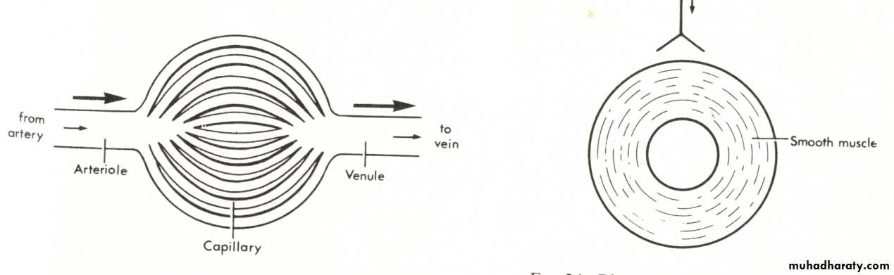 The arterioles attached to capillaries and at its beginning there is pre-capillary sphincter (smooth muscle), they respond to local or circulating vaso constrictor substances.