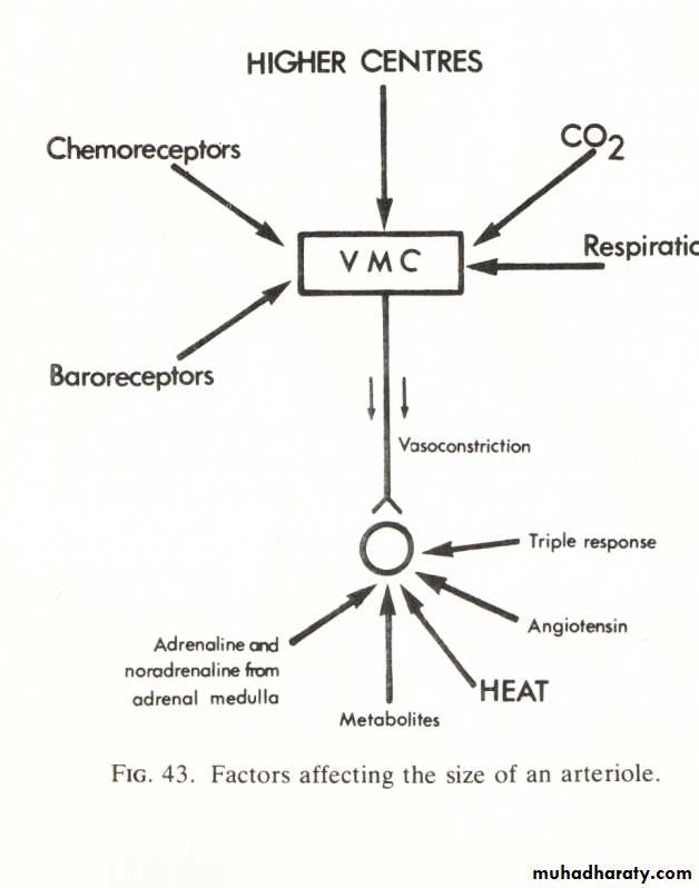 Decrease O2 tension and PH lead to relaxation of arterioles and per capillary sphincters.