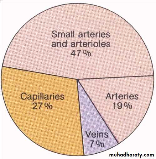 The arterioles are the major site of resistance of blood flow, and small change in their diameter causes large changes in the peripheral resistance.