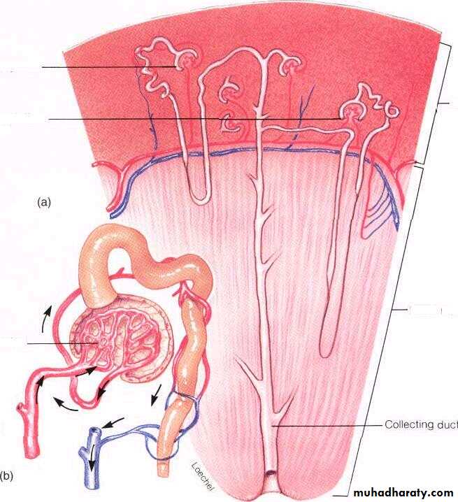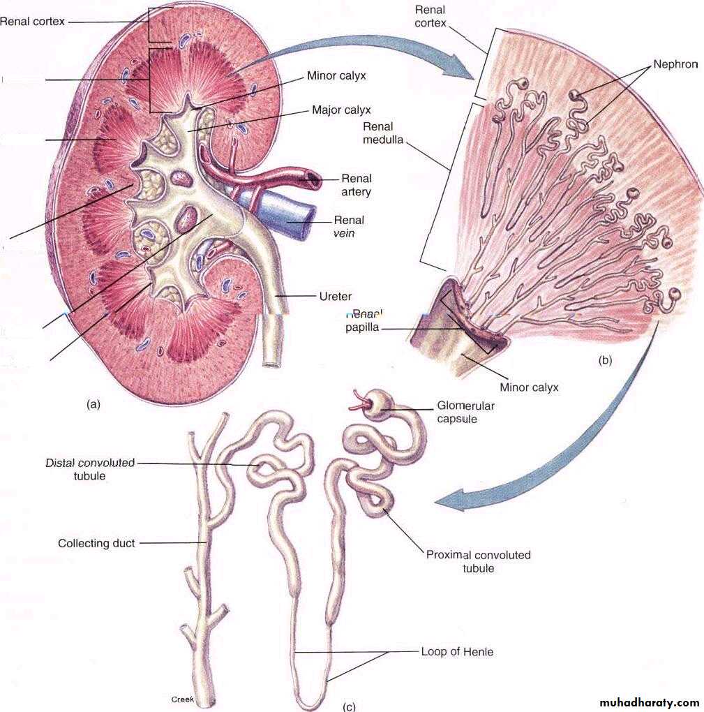 Nephrons; functional units of kidneys—responsible for formation of urineBulk of kidneys made ups of these hollow tubules (over 1 million per kidney)