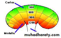 Medulla maintained at high osmolality (most body fluids isotonic at 300), Medullar about 1200-1400