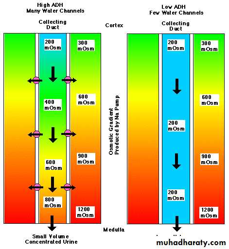 Note: The effect on water permeability is graded → the higher the ADH concentration, the more receptor sites occupied, and the greater the water permeability (up to the maximum effect)