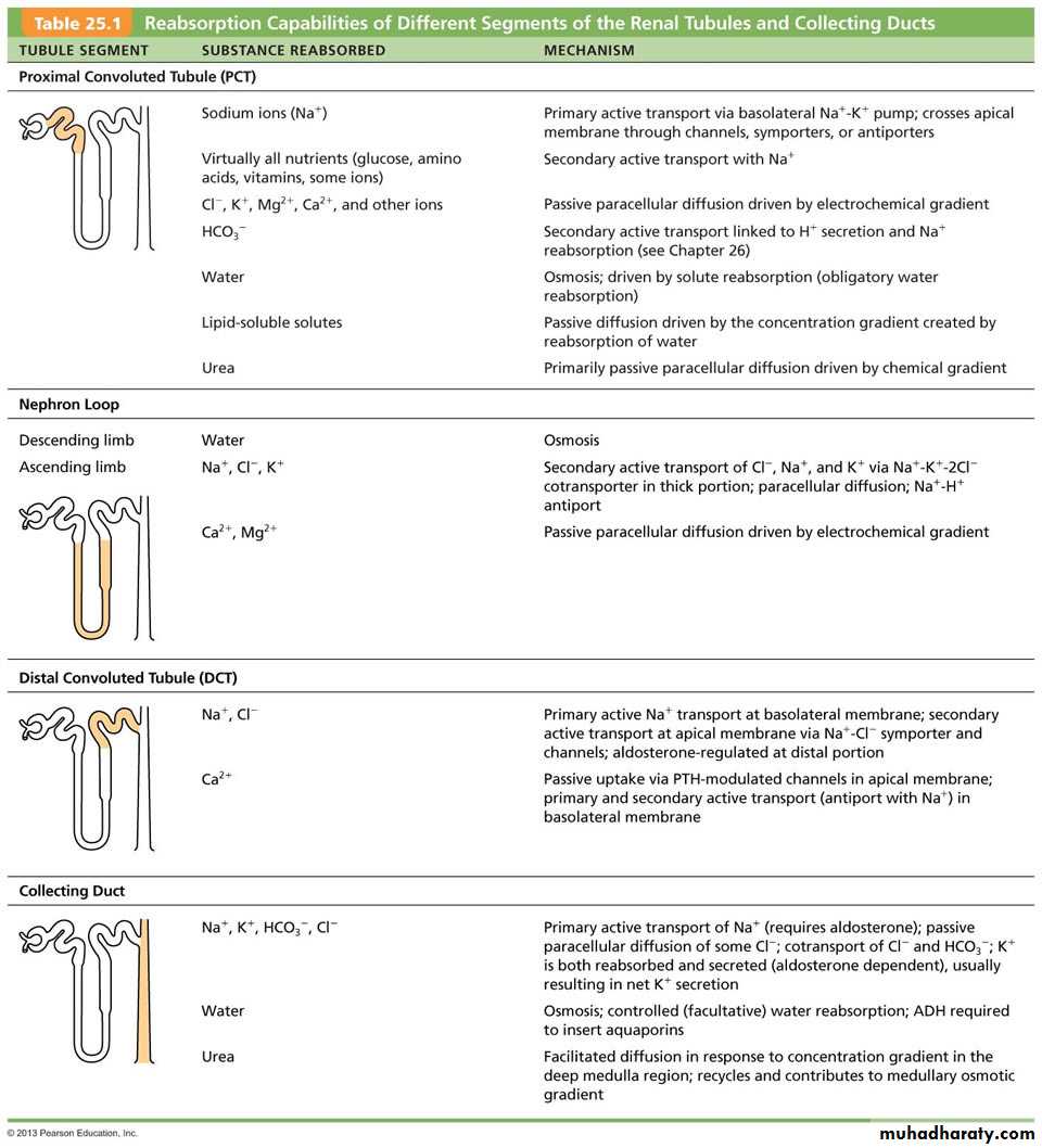 Products secreted from the blood into the tubular fluid include K+ and H+