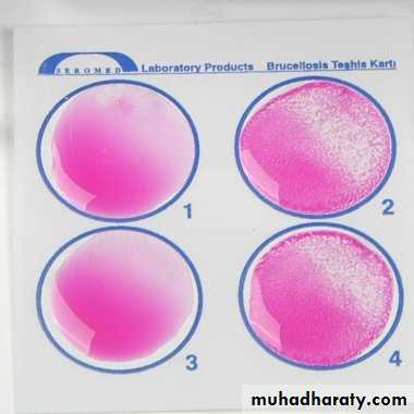 1-The Rose Bengal Test (RBT) is the most widely used screening test for brucellosis in both humans and animals owing to its apparent simplicity of reading .Principle of the test: