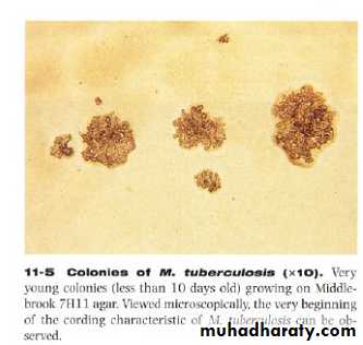 Macroscopical appearance:Culturing of mycobacteria requires both a non-selective and a selective media. Selective media contain antibiotics to prevent overgrowth of contaminating bacteria and fungi.