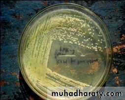 Cultural (Macroscopic) characteristics: Pale white or translucent colonies .Circular, convex, and smooth colonies. Obligate aerobes, grow readily on many types of media, on blood it gives β-hemolysis, sometimes producing a sweet or grape -like odor.• Cont/.. Pseudomonas aeruginosa