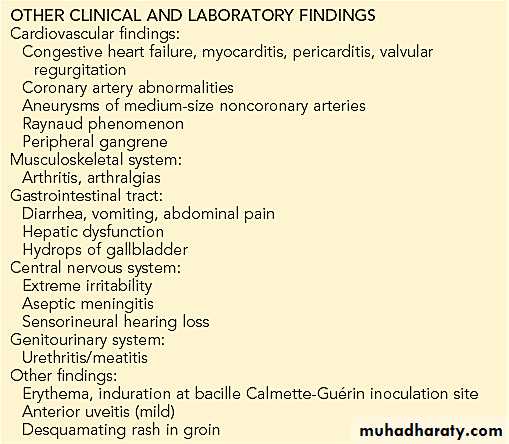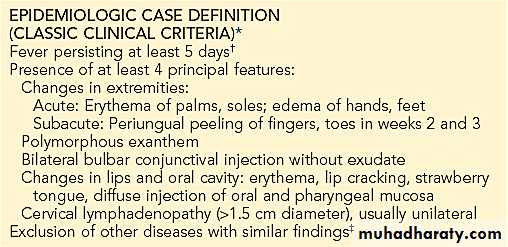 Kawasaki disease (KD), formerly known as mucocutaneous lymph node syndrome and infantile polyarteritis nodosa, is an acute febrile illness of childhood seen worldwide with the highest incidence occurring in Asian children. KD is a vasculitis (predominantly affects the medium-size arteries) with a predilection for the coronary arteries, although other arteries, such as the popliteal and brachial arteries, can also develop dilation.Clinical and Laboratory Features of Kawasaki Disease
