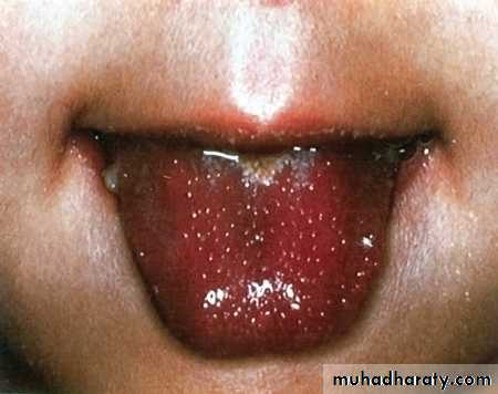 Q 6/ two years old child presents with a 3-day history of malaise, fever to 41.1°C, cough, coryza, and conjunctivitis. He then develops the erythematous, maculopapular rash pictured. He is noted to have white pinpoint lesions on a bright red buccal mucosa in the area opposite his lower molars.