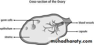 the surface of the ovaries is covered by single layer of cuboidal cells ,the germinal epithelium ,beneath this ill defined layer of conensed connective tissue ‘tunica albuginea’