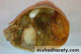 Most cyst presenting with lower abdominal pain but without sign of peritonism or systemic upset• however if woman present with acute abdomin and sign of systemic upset due to ovarian torsion.rupture .heamorrhge urgent diagnostic laparoscopy or laparotomy may be required in this case blood should be send for tumor marker at time of surgery if cyst is not benign for follow up ……