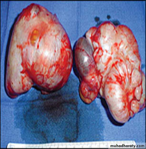1-2% of ovarian tumor.unilateral and have solid grey white or yellow appearance to cut surface fibrous eliment &transitional epithelium the may Screate estrogenGerm cell tumour