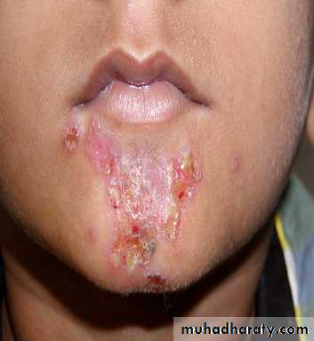superfcial infections: common agent of boils, carbuncles, pustules, abscesses, conjunctivitis and wound infections; rarely causes oral infections; may cause angular cheilitis (together with the yeast Candida)at the angles of the mouth.
