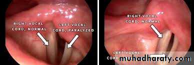 A vocal cord palsy may arise from pathology of: (1) The recurrent laryngeal nerve, e.g. iatrogenic, pressure damage or a neuropathy.
