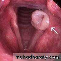 Arise posteriorly, adjacent to the vocal process.Frequent history of intubation trauma.