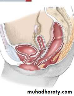 1- loss of relation to sphincter.