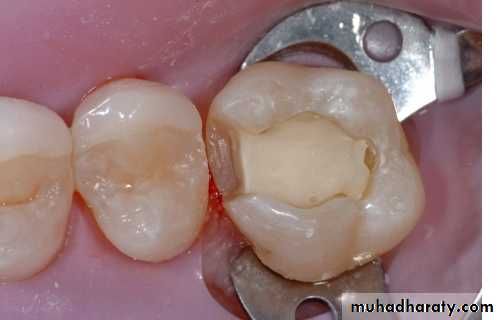 For a composite restoration, the preparation is treated with a bonding system (etched, primed, coated bonding agent) and then restored.