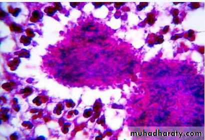 • G/S :Variable cellular morphology, ranging from diphtheroidal to coccoid filaments มักพบ sulfur granule จากการย้อม gram ได้ และย้อมไม่ติด mAFB