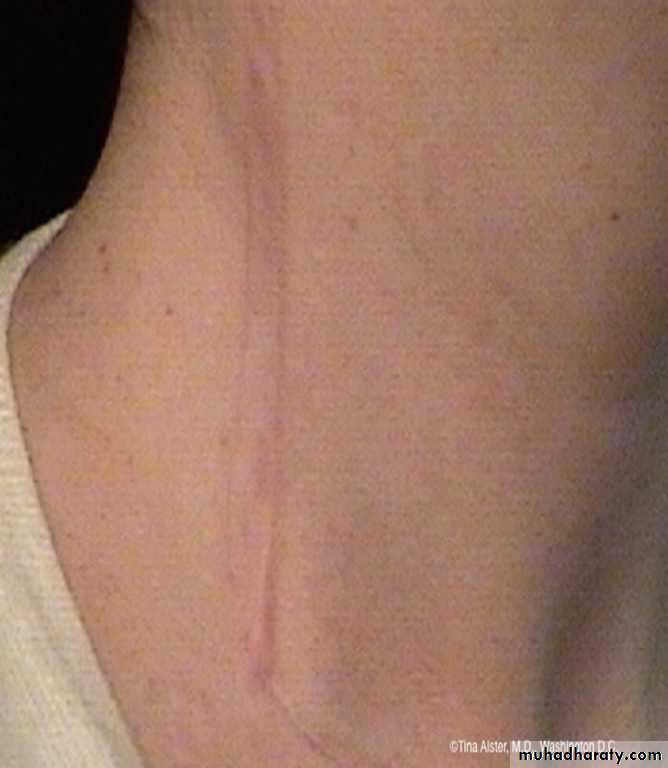 along a cleavage line narrow scar,crosses lines wide or heaped-up scar.