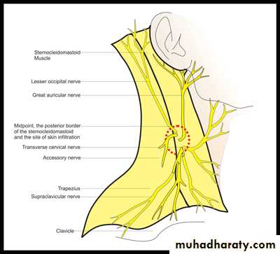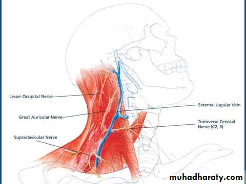 4- The transverse cutaneous nerve (C2 ,C3)the skin on the anterior and lateral surfaces of the neck,