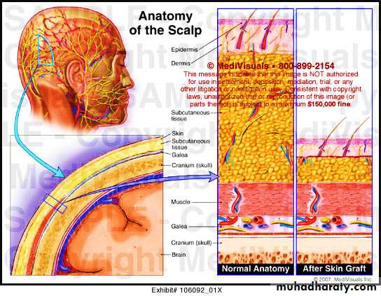 The scalp is the soft tissue covering the skull.The scalp extends from the supraorbital margins anteriorly