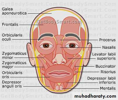 The muscles of ‘facial expression’ are developed from the mesoderm of the second pharyngeal arch.They all have 2 peculiarities:-
