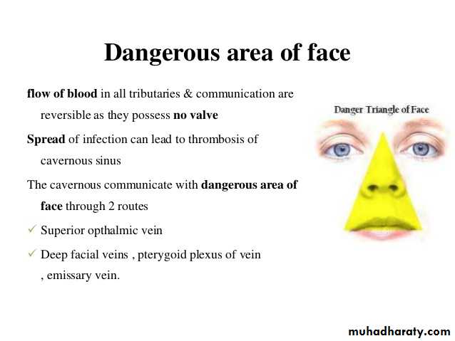 superciliary ridges anteriorly, hemorrhage and infection may extend to the upper & lower eyelids.