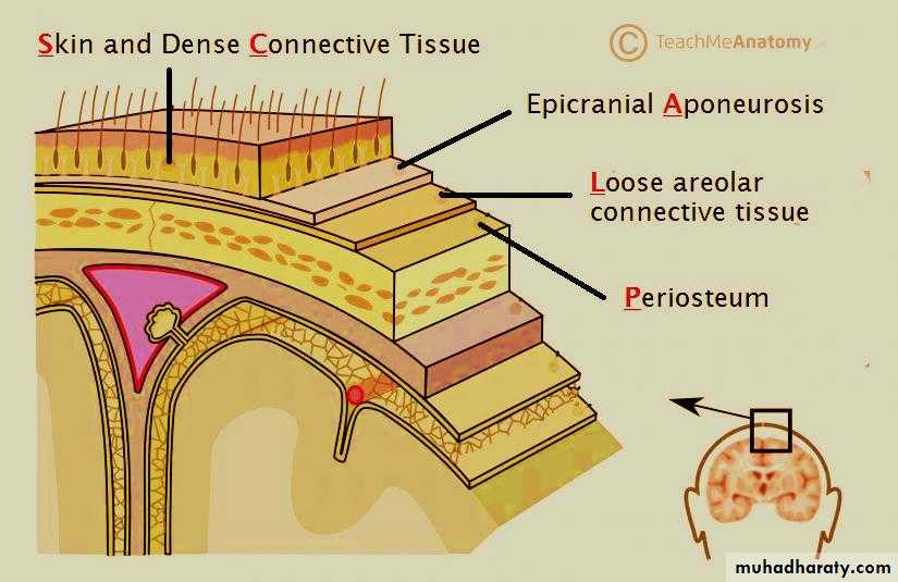 Is a danger space of the scalp.• Is located between the epicranial muscles and the pericranium (periosteum).