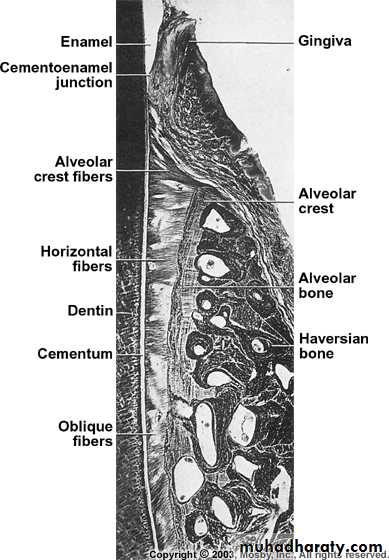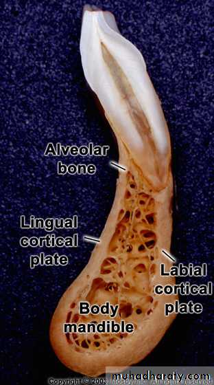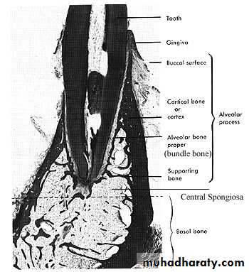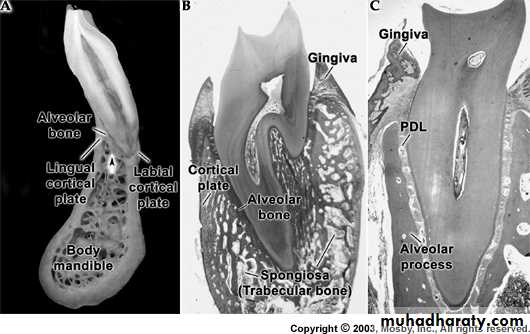 a) outer cortical platesb) a central spongiosa c) bone lining the alveolus (bundle bone)