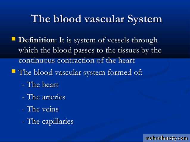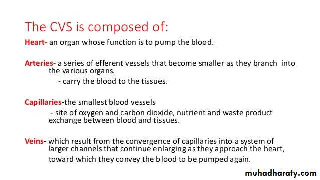 -pumps and directs blood cells and substances carried in blood to all tissues of the body - It includes both the blood and lymphatic vascular system.HEART ARTERIESVEINSCAPILLARIES