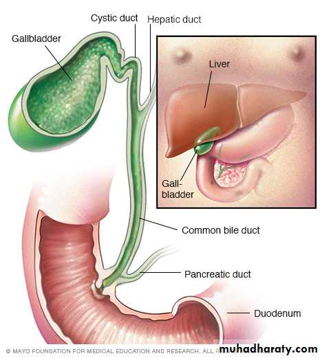 Th e gallbladder is a small, hollow organ attached to the inferior surface of the liver.Bile that produced by liver hepatocytes leaves the liver and flows to, stored, and concentrated in the gallbladder.