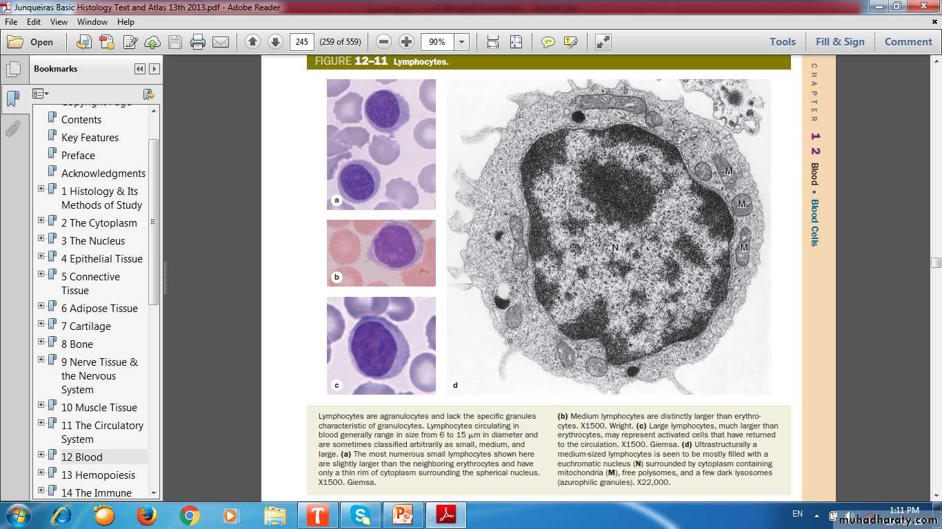 Smallest leukocytes, About size of RBCsMost numerous type of agranulocyte, 1/3 of all WBC