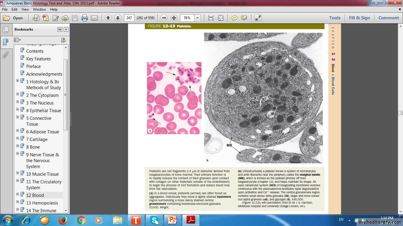 Hyalomere ----------- Lightly stained peripheral zoneGranulomere ------ Darker-staining central zone containing granulesGlycocalyx --------- Involved in adhesion & activation during coagulation
