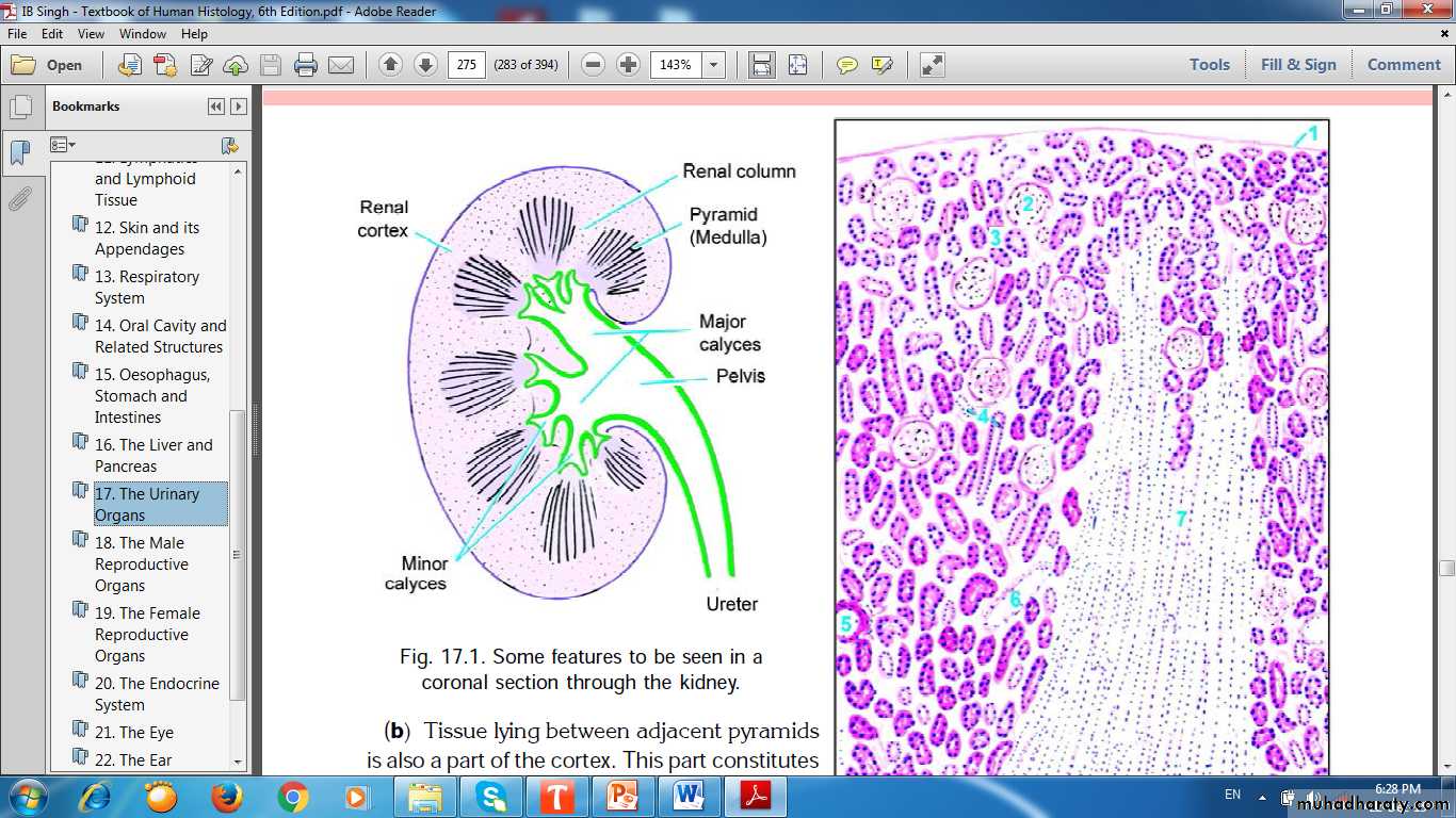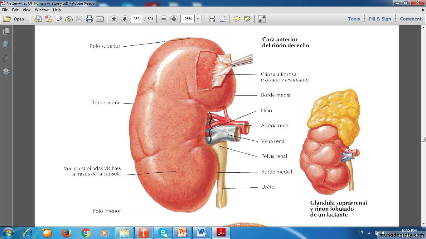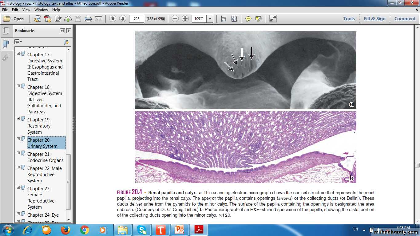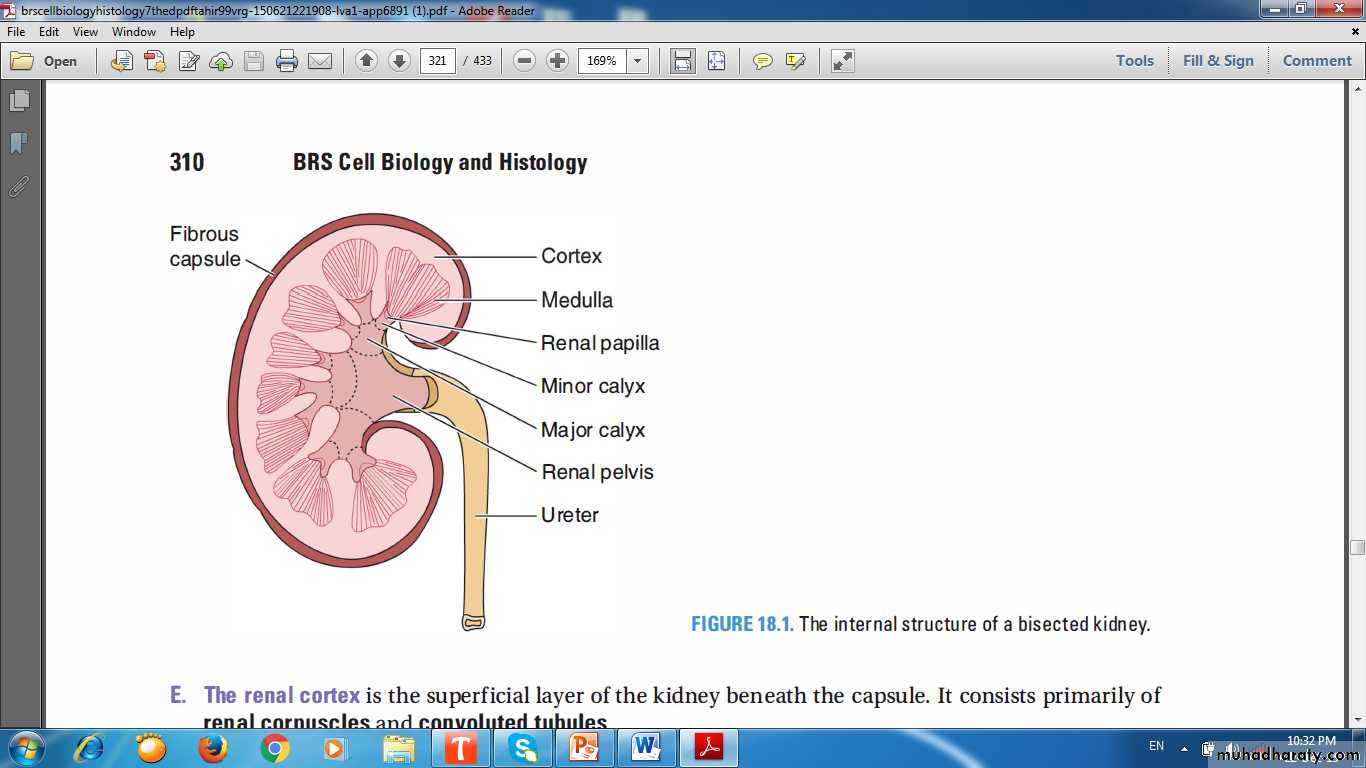 Pelvicalyceal systemlined by special type of epithelium (urothelium)