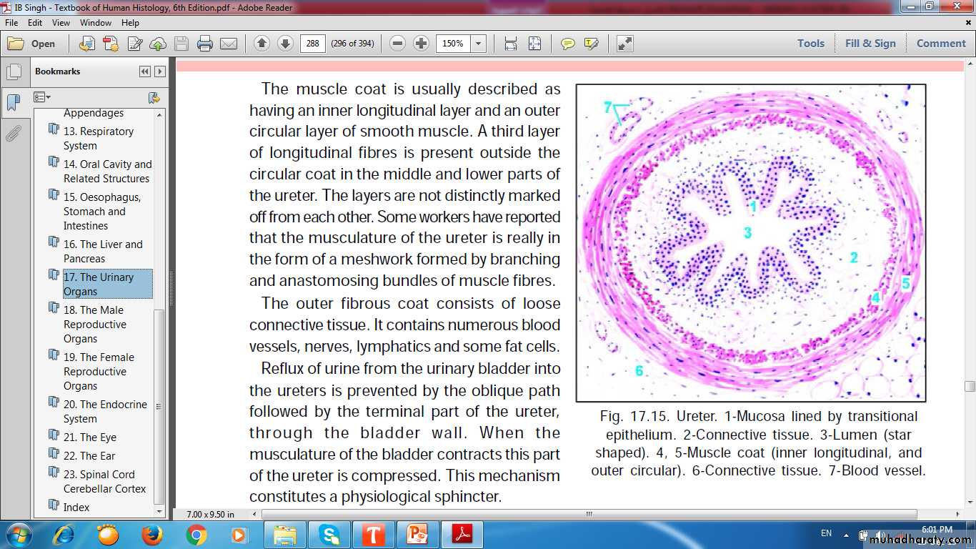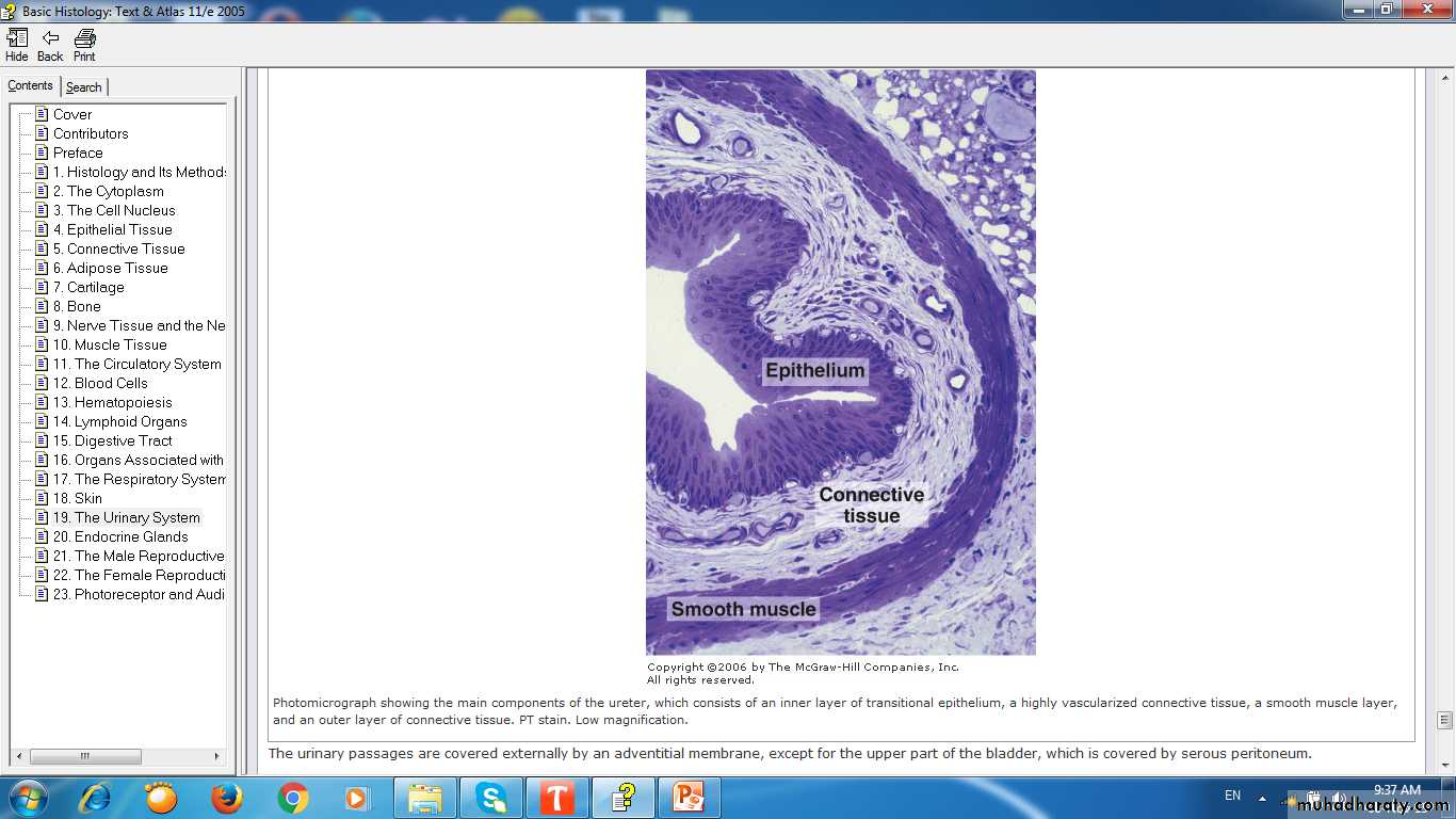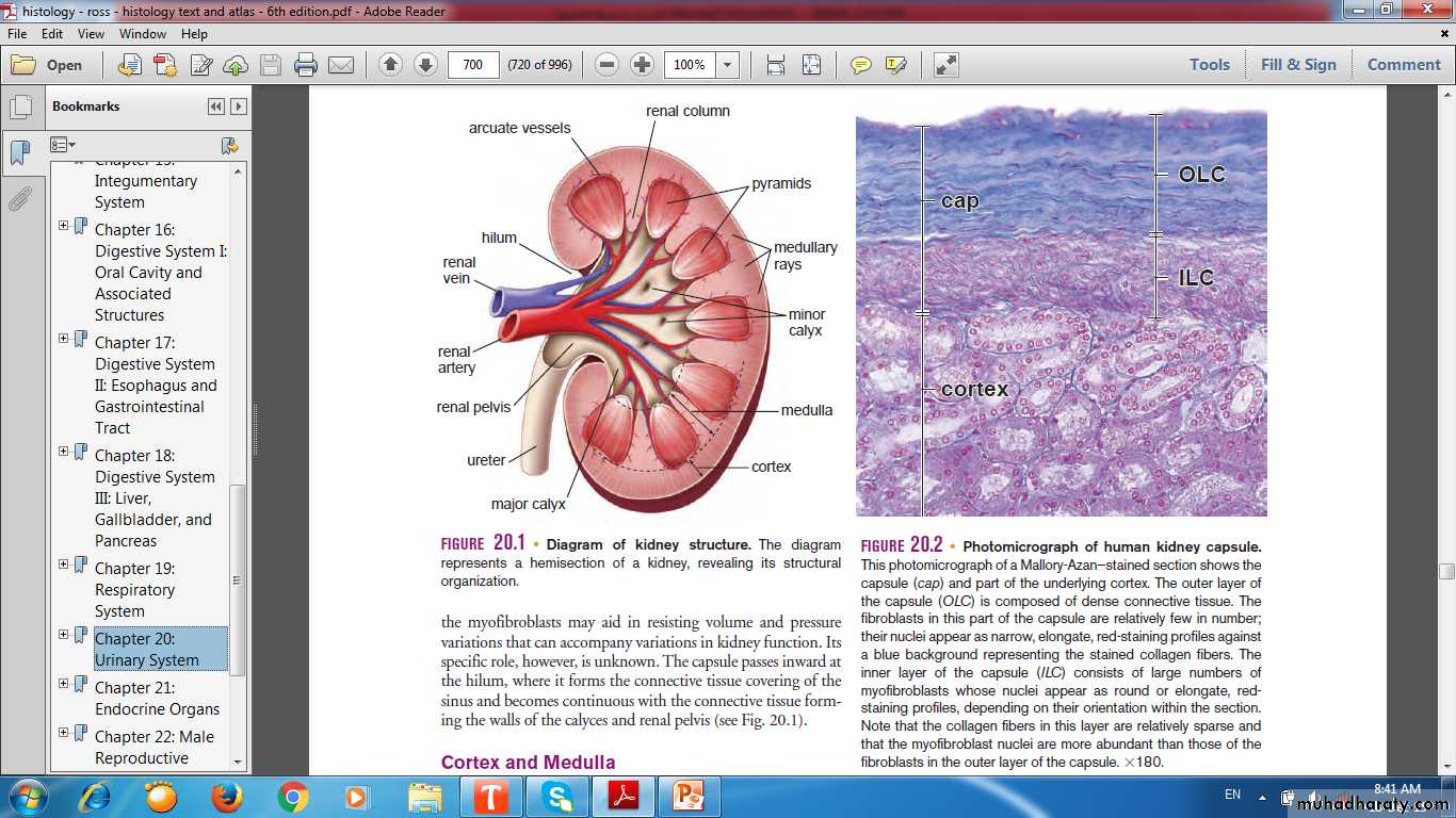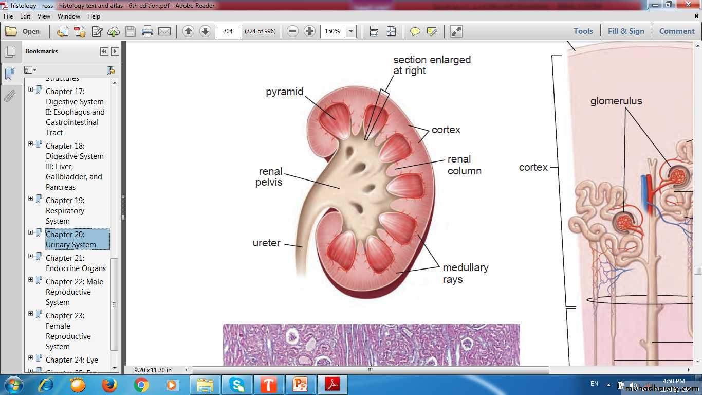 Pelvicalyceal systemlined by special type of epithelium (urothelium)