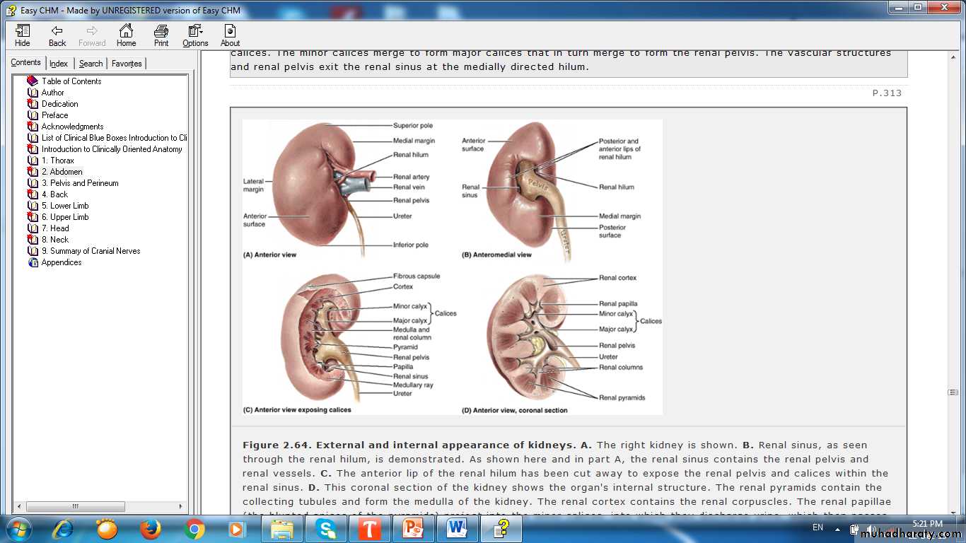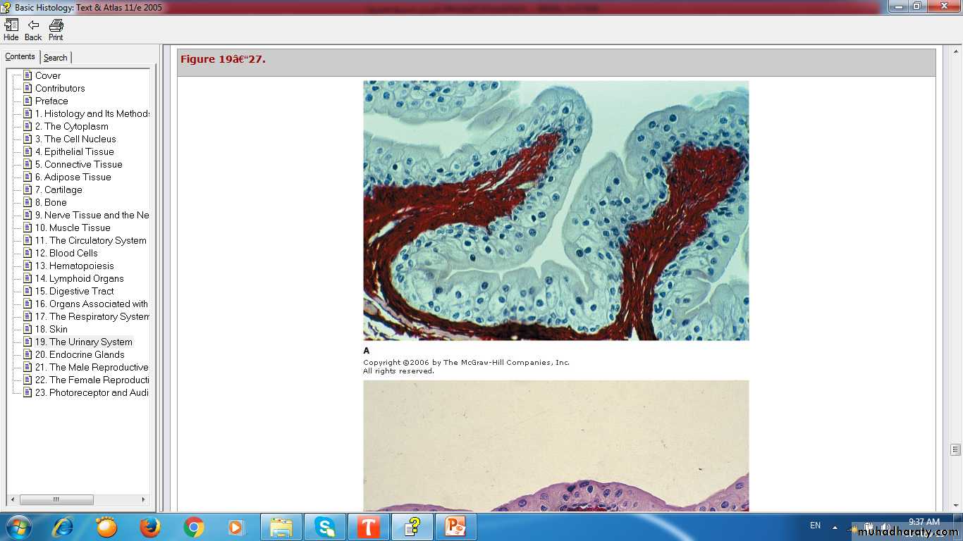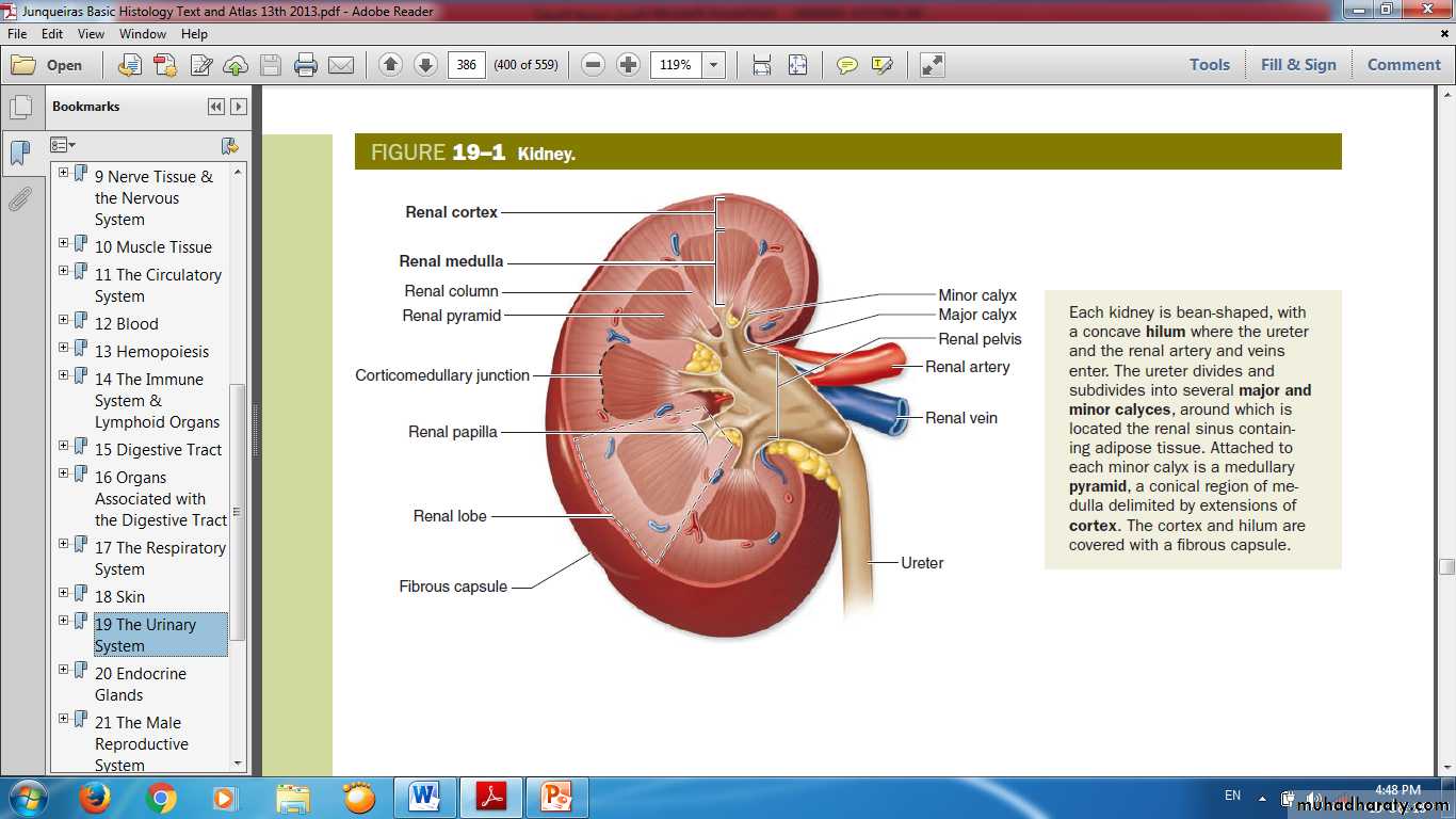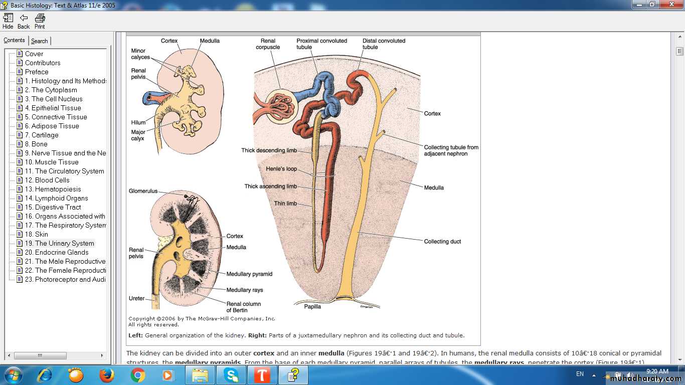Pelvicalyceal systemlined by special type of epithelium (urothelium)