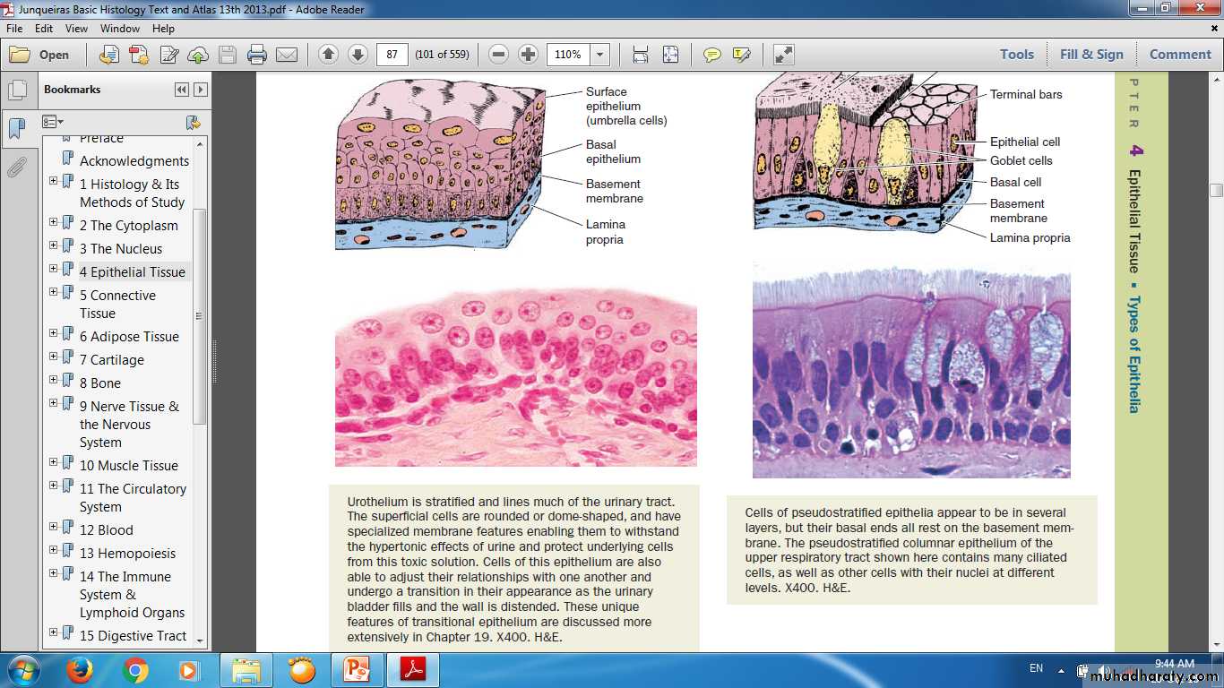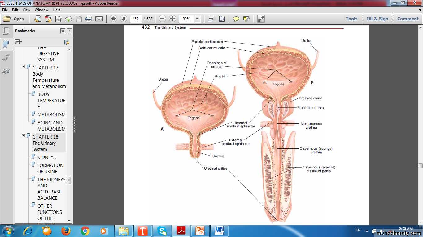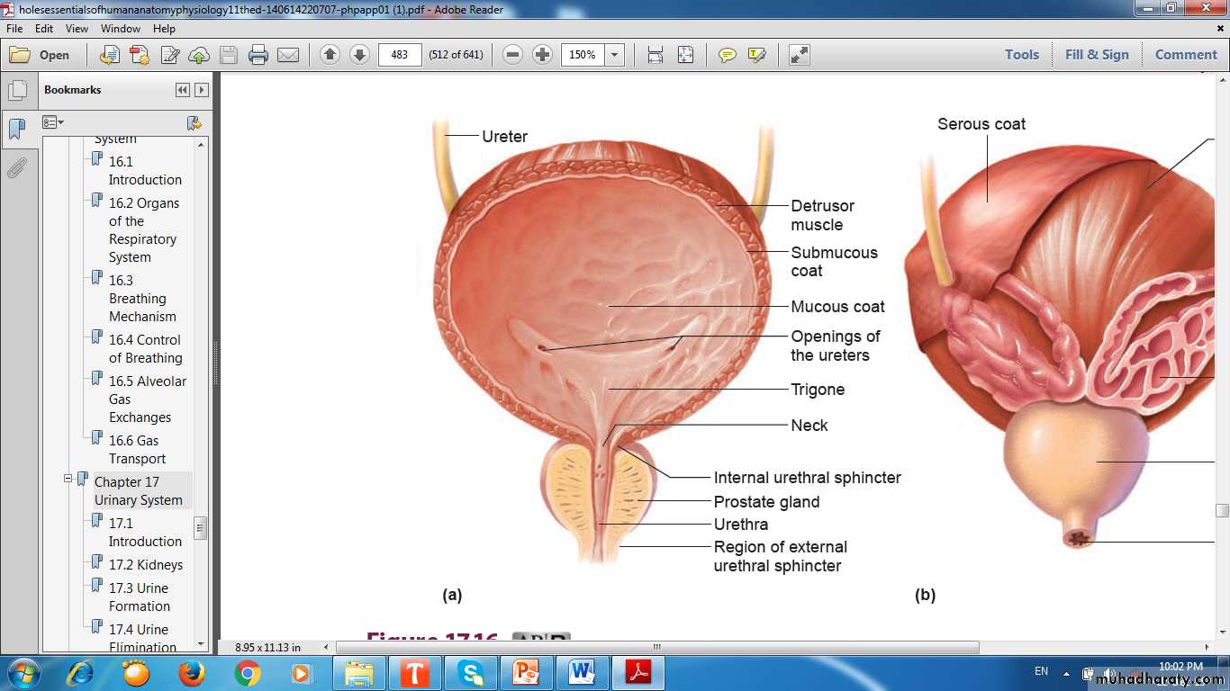 • Both in the male and female the greater part of the urethra is lined by stratified columnar and pseudostratified epithelium.• A short part adjoining the urinary bladder is lined by transitional epithelium.