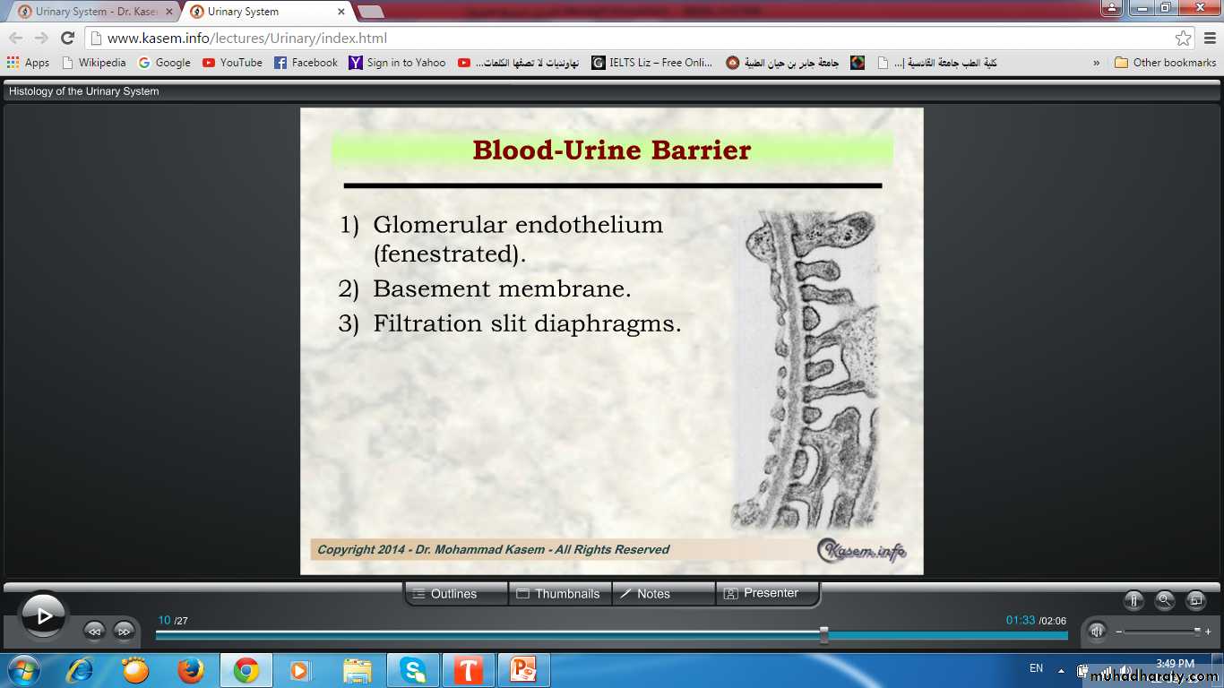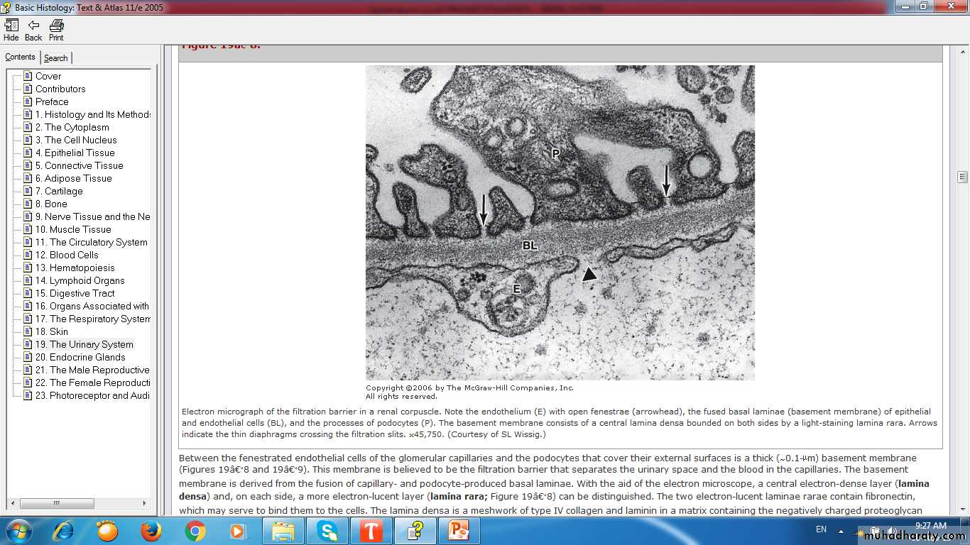 Blood Urine Barrier (EM)Podocyte PBasement membrane BL (central lamina densa surrounded by two lamina raraEndothelium E