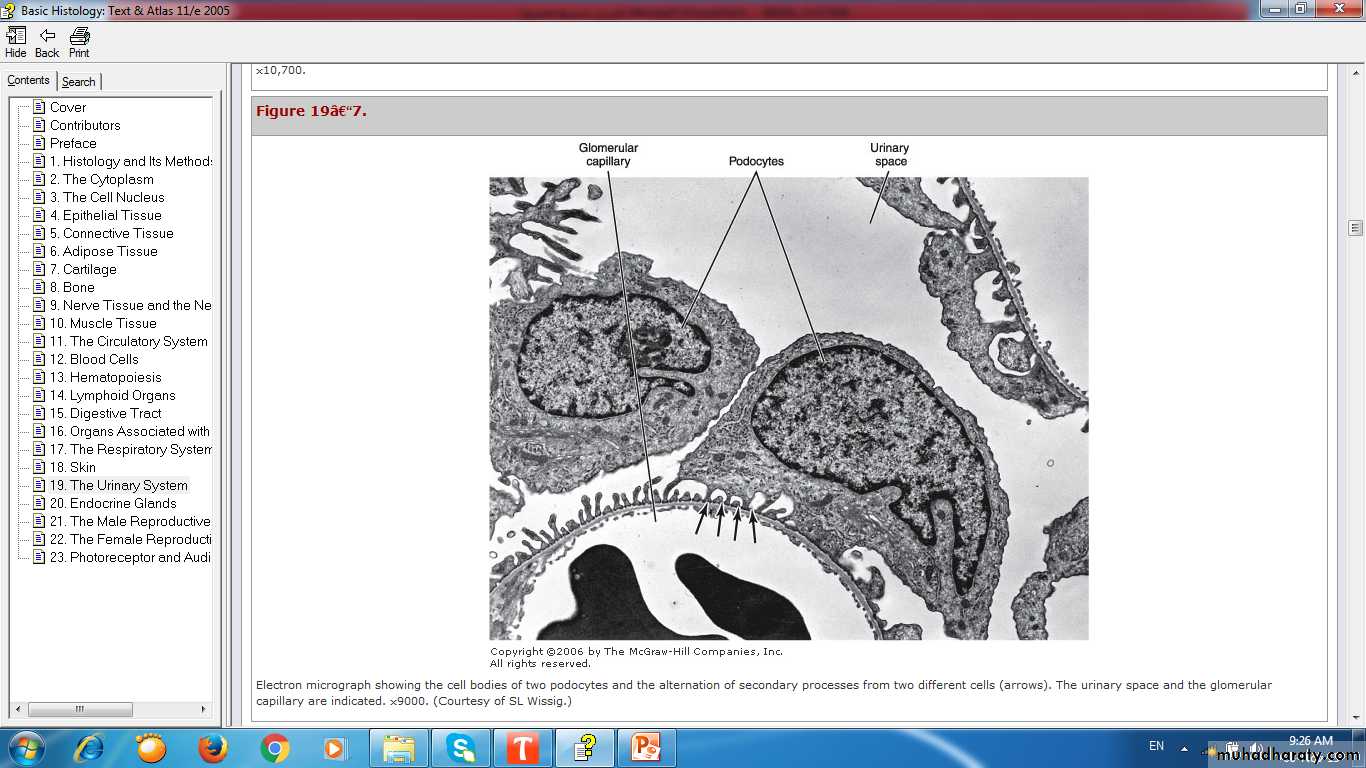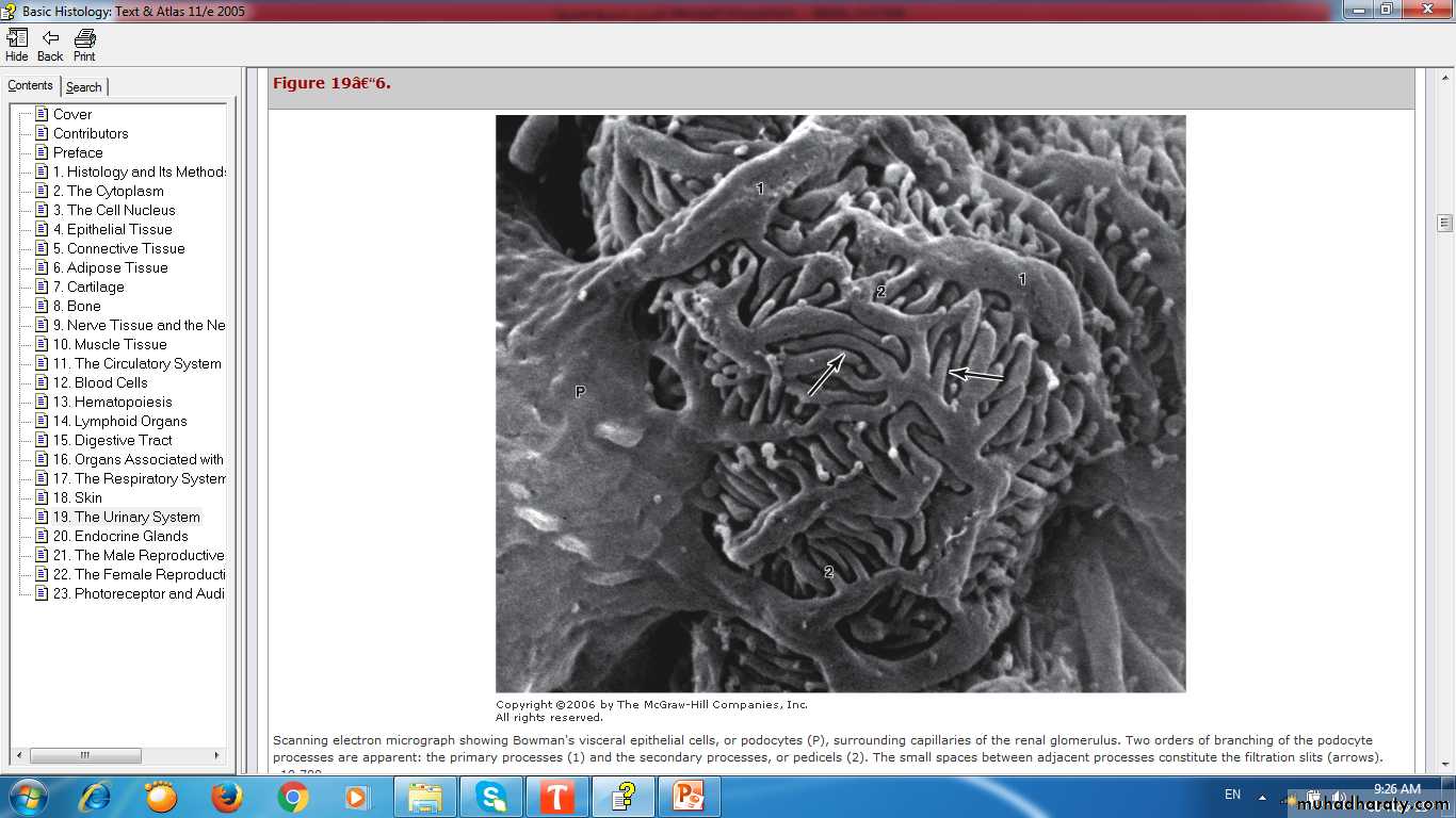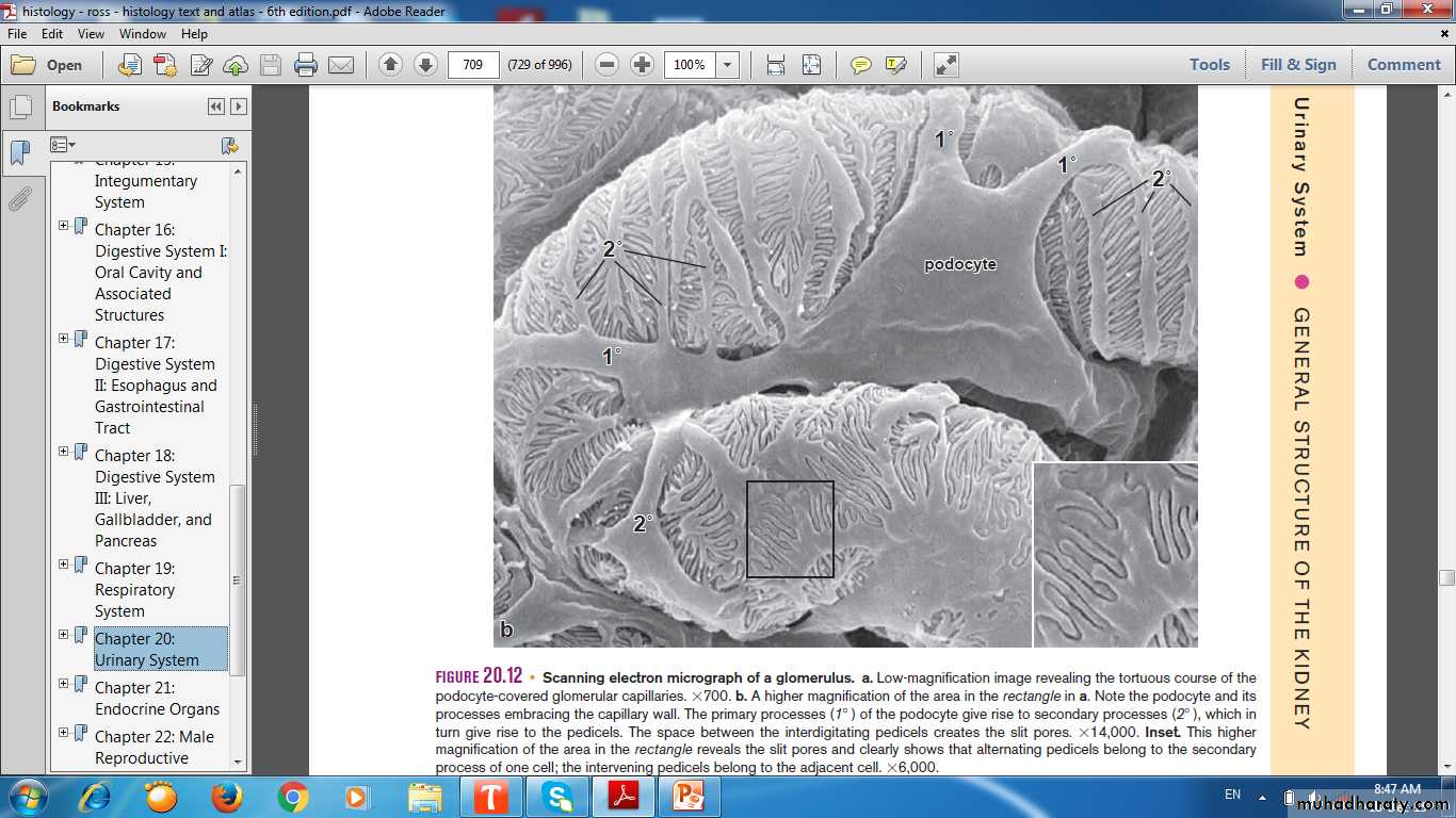 Podocytes (primary 1⁰, secondary2⁰ processes& pedicles)