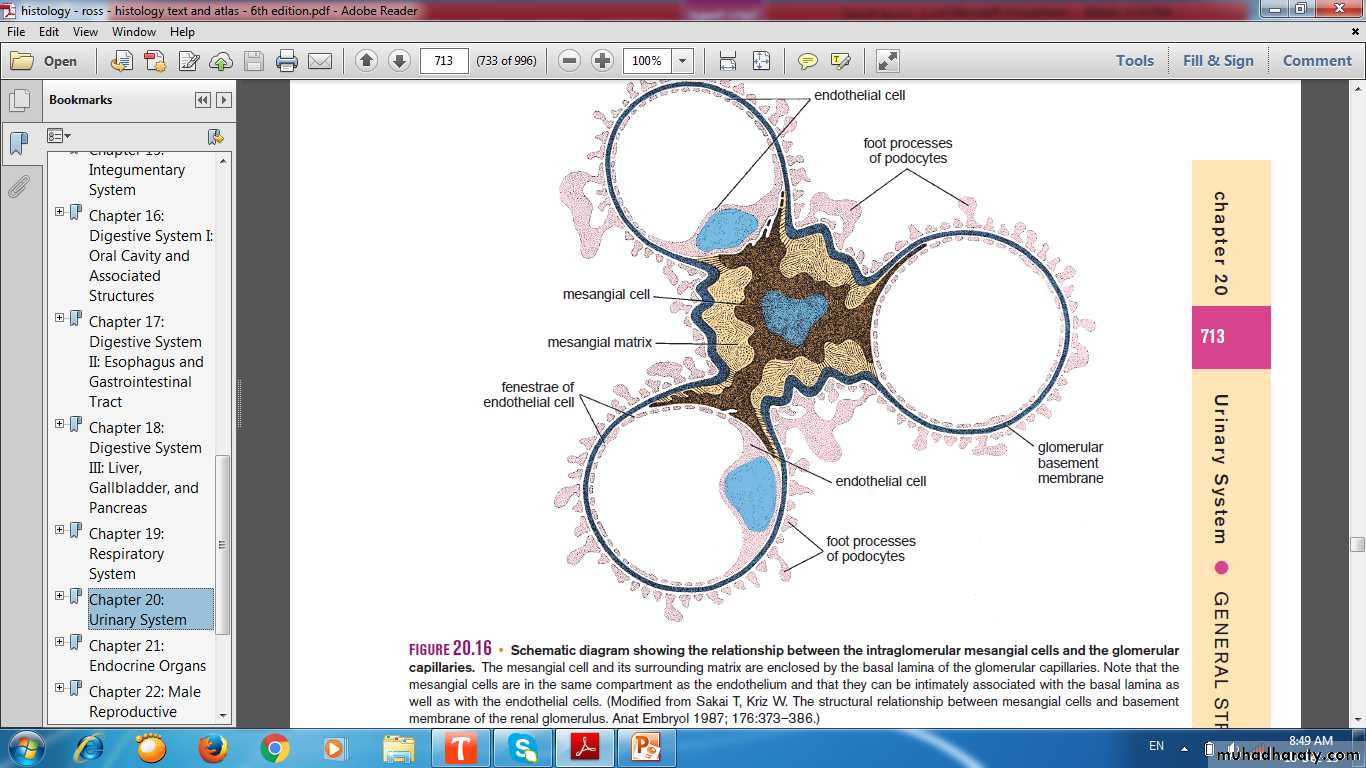 Mesangial cells (macrophage of kidney)Adherent to glomerular capillariesstructural support synthesize extracellular matrix