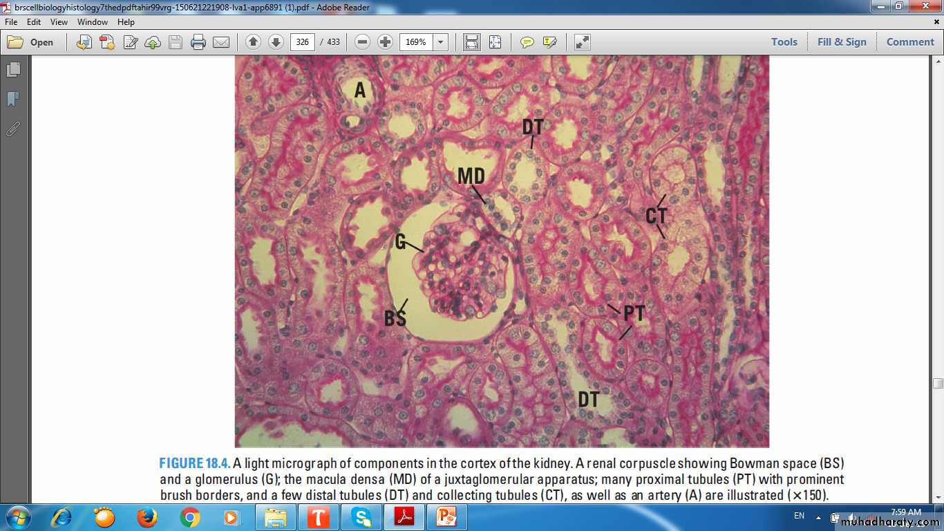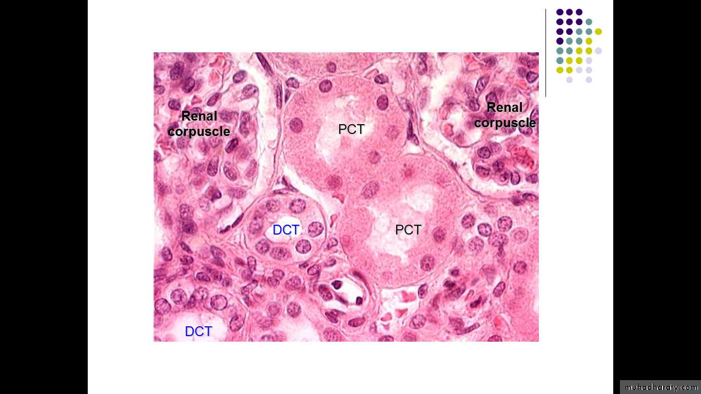 • Renal corpuscle.• Proximal convoluted tubule(PCT).