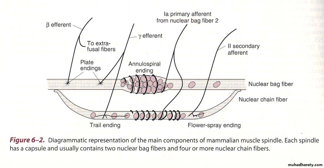 • Ia fiber primary (annulospiral) and II fibers secondary (flower spray) ending