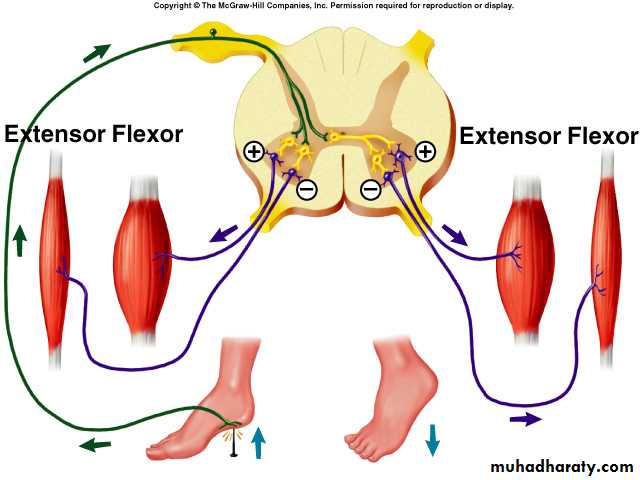 Cutaneous sensory stimuli on a limb contraction of flexor muscles withdrawing limb “flexor reflex" or "nociceptive reflex" or "pain reflex".Polysynaptic reflex