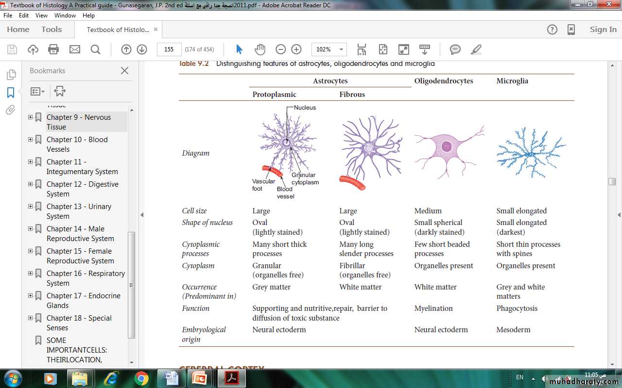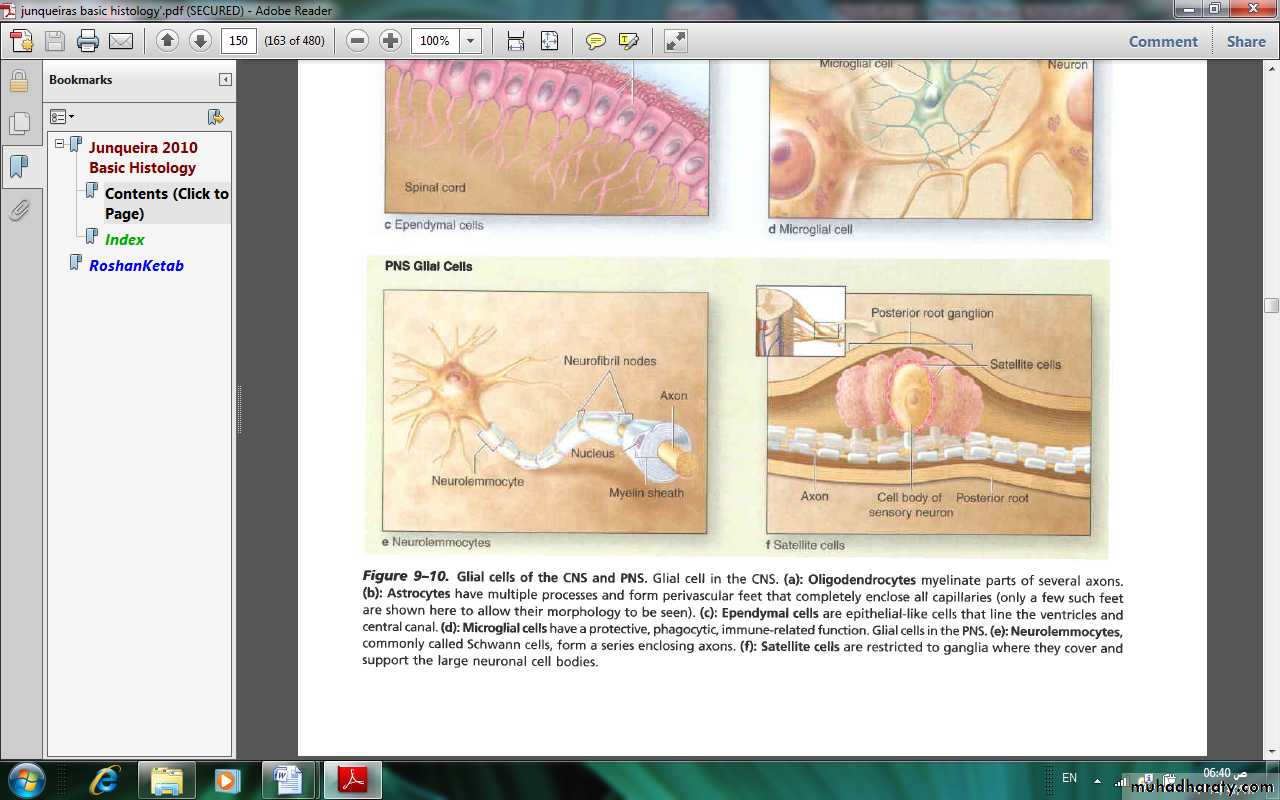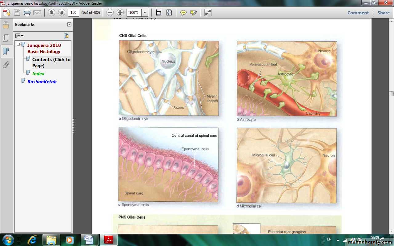 The principal functions of neuroglia are summarized in table (3)Table (3): Principal functions of neuroglial cells.